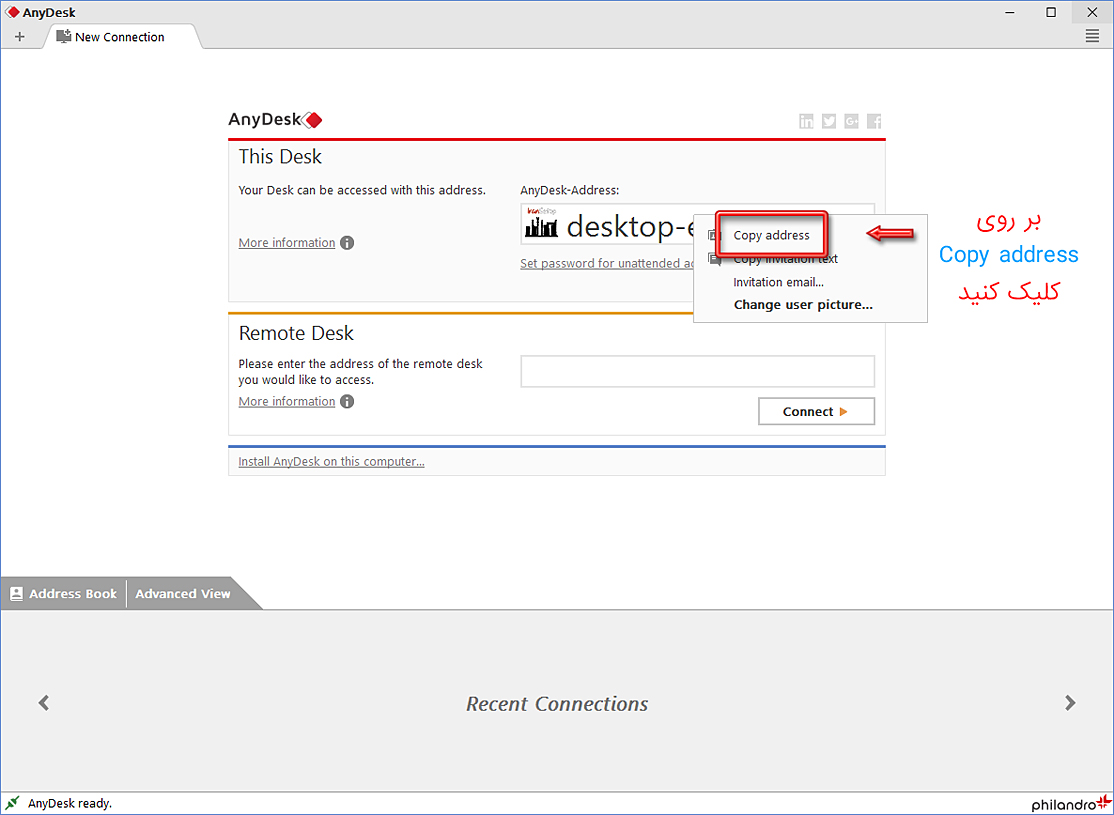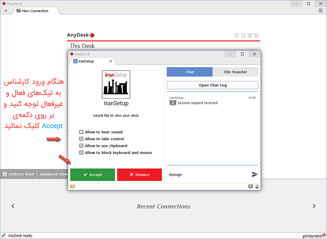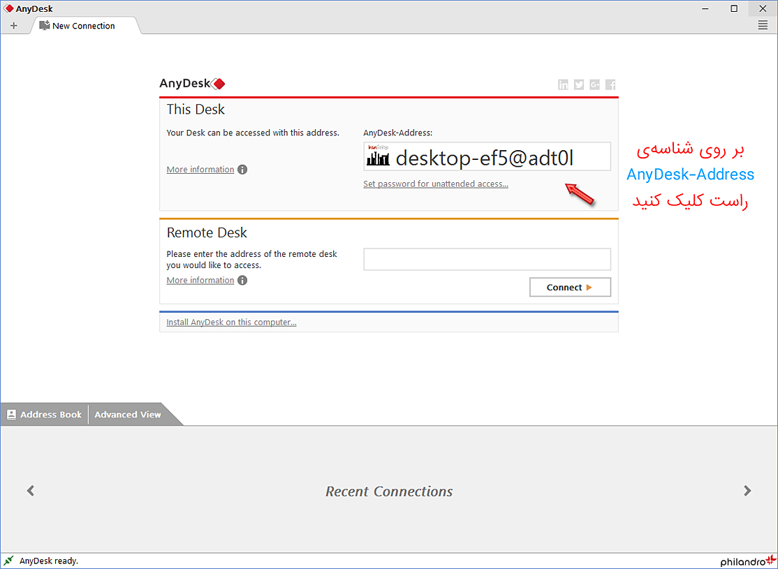 از طریق لینک زیر می توانید نرم افزار AnyDesk را دریافت نمائید: https://download.anydesk.com/AnyDesk.exe
